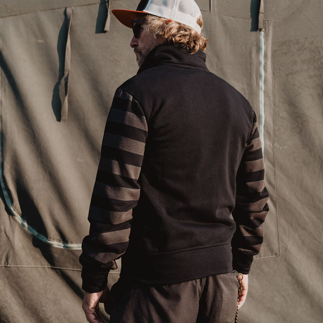 Built for the workshop, the road, and everything in between, the Holy Freedom Garage zipped sweat delivers raw style with functional muscle. Made from 100% unbrushed emery cotton, it’s tough yet breathable, with a windproof front lining to keep the chill out. Distressed fabric edges, water-based prints, and a metallic zip give it that worn-in, worked-hard attitude. Finished with welt pockets and built to move.