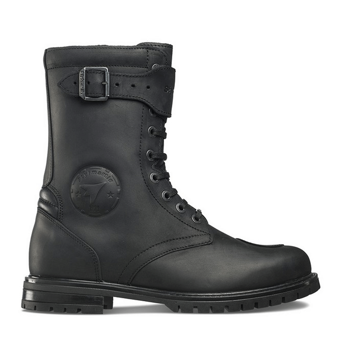 The Rocket Black is our waterproof military-style boots with a vintage twist, a perfect mixture of quality, safety and style. The full-grain greased leather (Rocket Wp black) intensifies the “worn-in” effect, embellishing the look. The waterproof and breathable lining, PU moulded protections and the leather gear protection, lace and zip closing make Rocket a part of the Stylmartin core range.