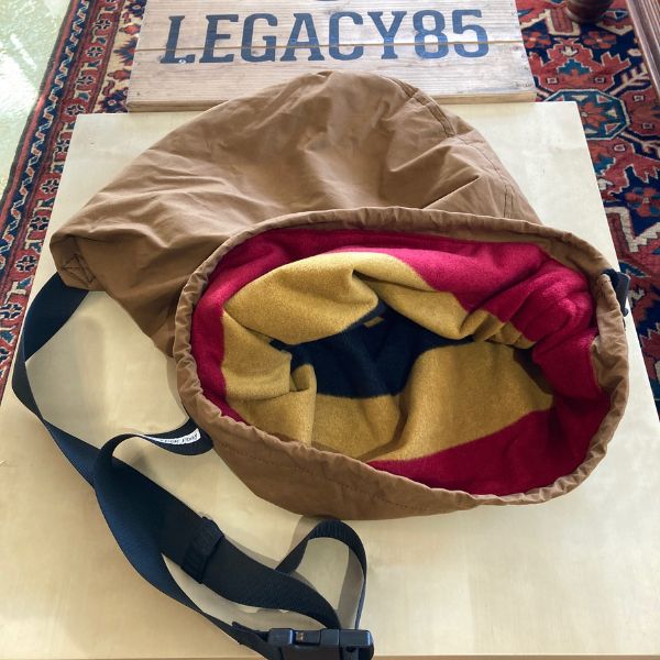 Beautifully crafted in a beige dry waxed cotton with a super soft fleece liner, draw string closure and an adjustable shoulder carry strap.