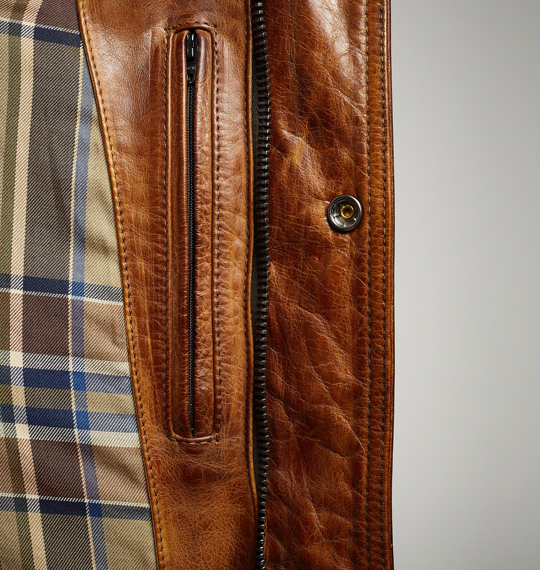 - Zip, snap, and belt fastening