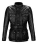 The iconic Belstaff Tourist Trophy jacket is updated for the serious biker, with removable D30 T5 EVO X Range elbow and shoulder protection that meets European CE safety standards, as well as a new fit for the female rider. In black Signature 6oz. waxed cotton, this jacket is both luxurious and highly durable, with a seam-sealed Miporex membrane between the shell and the lining. Choose this classic four-pocket design, with slanted left chest pocket for easy access when on the bike, and feel the authenticity of Belstaff's moto heritage alongside expertly integrated safety measures, as well as considered design in the form of under-arm metal vents and an embroidered logo buckle cover.