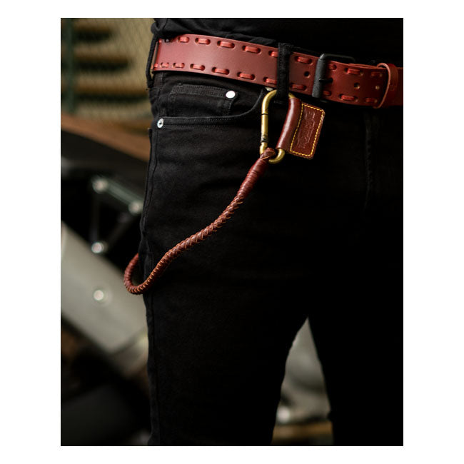 The leather braid is meticulously finished by hand, while the heavy-duty metal carabiners provide secure and durable attachment to your pants.